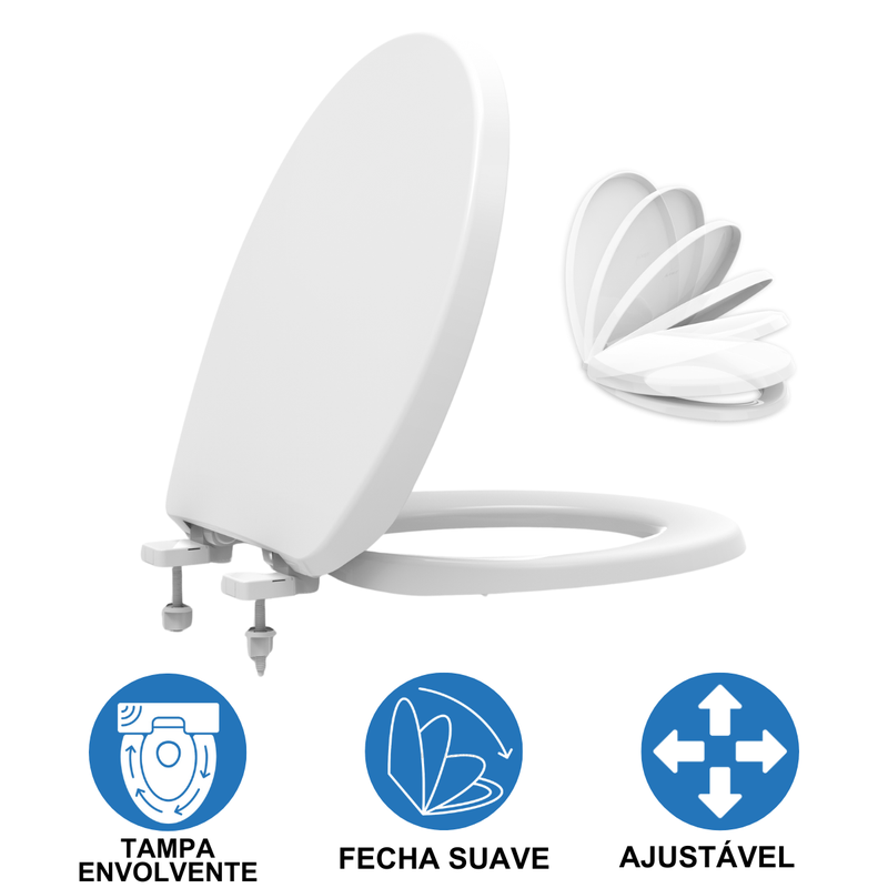 - Design universal – Compatível com todos vasos sanitários no formato oval.